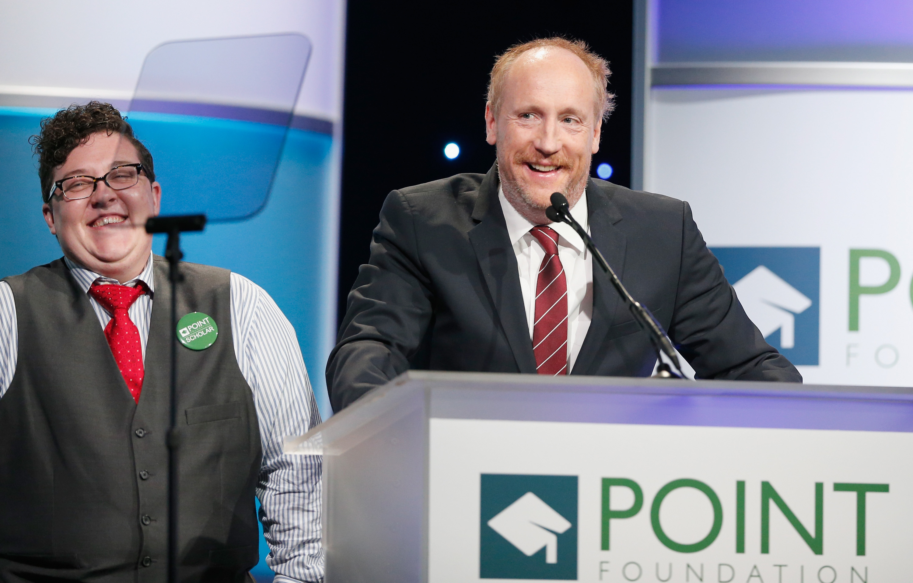 Eli Lawliet and actor Matt Walsh speak onstage at the Point Honors gala