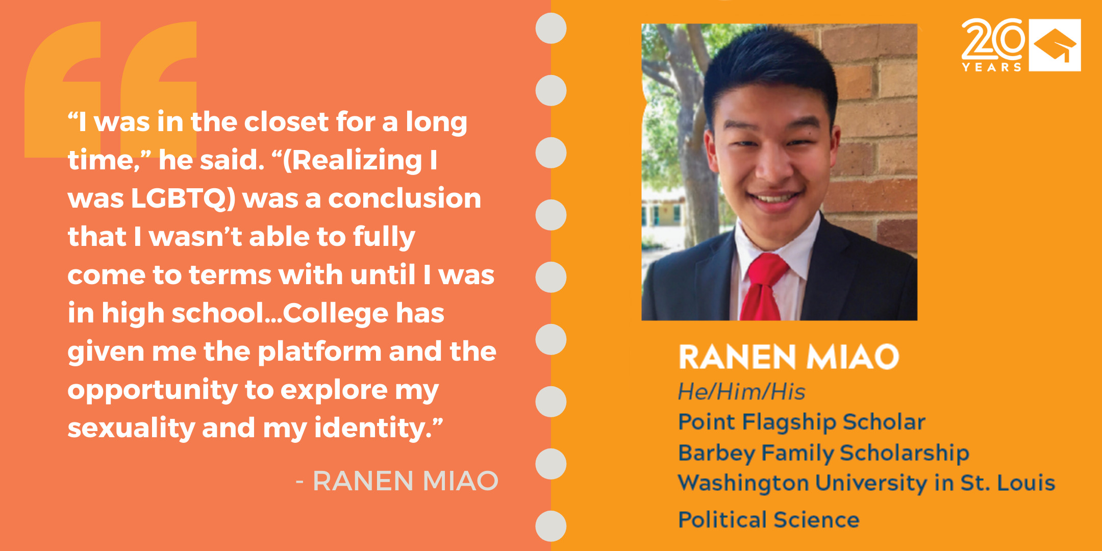 When it comes to addressing policy and changing society for the better, Ranen sounded ready to engage in the challenging work of making progress happen. A student at Washington University in St. Louis and the son of first-generation immigrants, Ranen is the Student Body President and Social Justice Chair of his campus’s Pride Alliance.