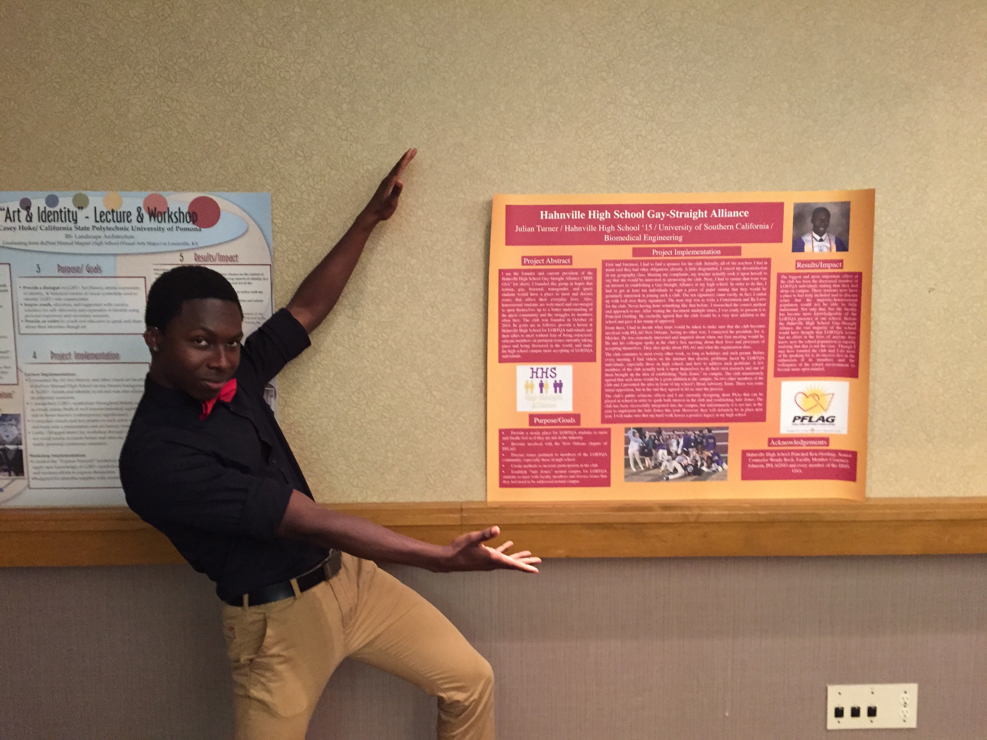 Julian shows off his poster presentation at Point's 2015 Final Selections in Los Angeles.