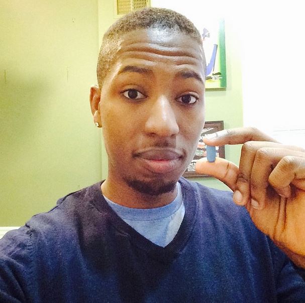 Point Alum Noel shows off his PreP Daily Blue. Photo courtesy Human Rights Campaign Instagram account.